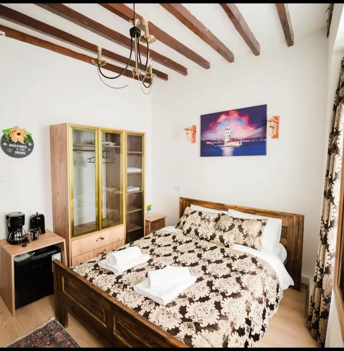Dairemiz, 1+0 konseptinde olup bir çift kişilik yatak ve bir banyoya sahiptir. Odanızda konaklamanızı konforlu hale getirecek filtre kahve makinesi, su ısıtıcısı ve mini buzdolabı bulunmaktadır. Binanın en üst katında yer alan geniş ve ferah teras, büyüleyici deniz manzarasıyla hem gündüz hem de gece eşsiz bir atmosfer sunar. Bu ortak alan, keyifli sohbetler, huzurlu anlar ve unutulmaz anılar biriktirmek için mükemmel bir yerdir.